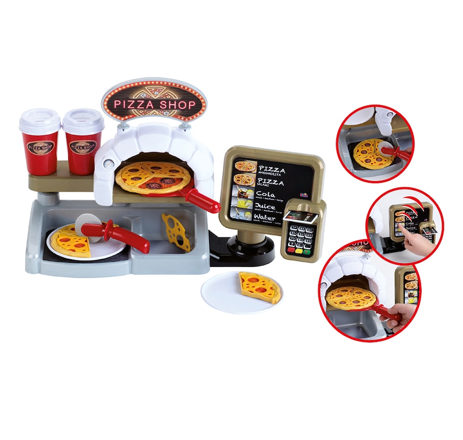 • Bring home the joy of eating out at your kids favourite pizza shop. With this playset your kid will spend hours in imaginative play baking, and eating their favorite pizza
