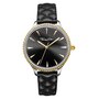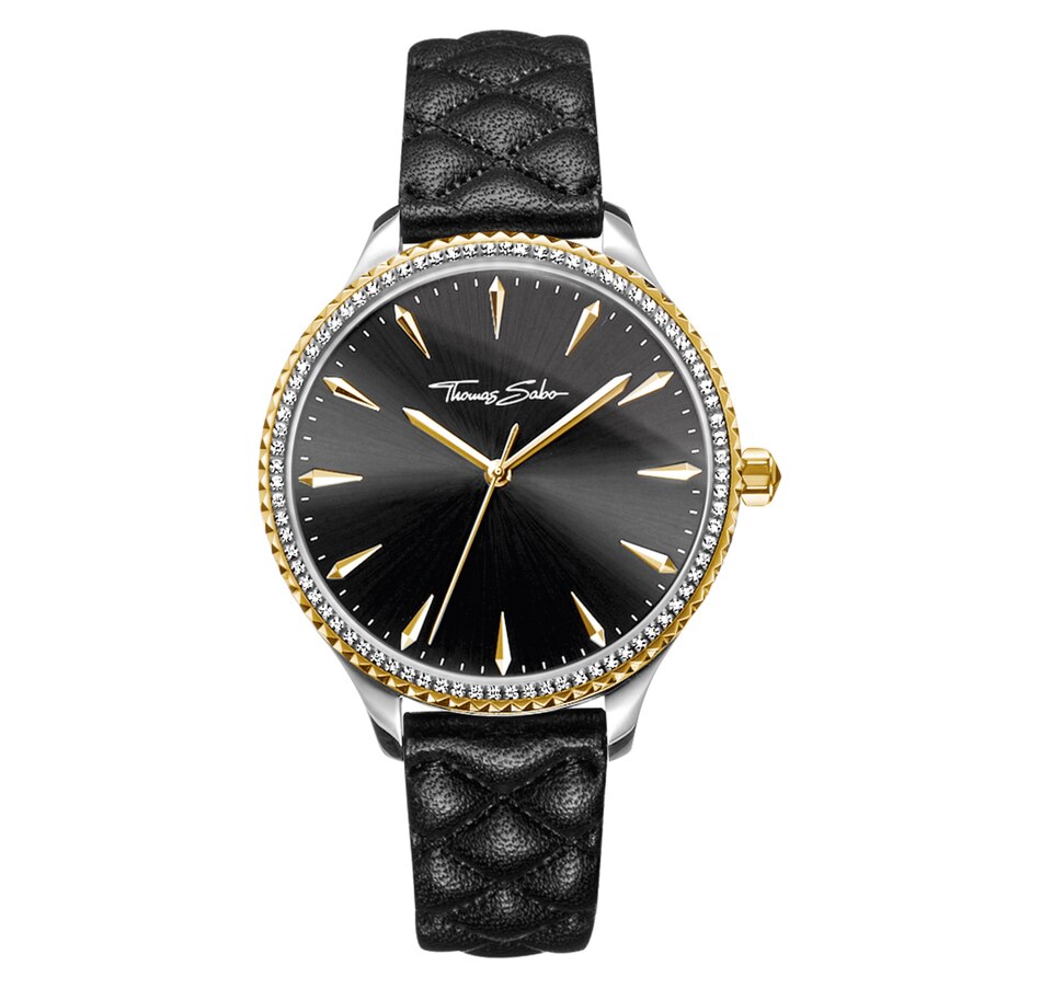 • Black dial with white cubic zirconia; gold stick markers at all points