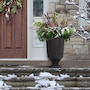 The Tierra Verde Vibrato Modern Urn recycled self-watering indoor/outdoor large planter is an elegant and eco-friendly choice for any outdoor living space, patio, or indoor area. Crafted from recycled material, this sleek planter is designed to withstand the elements, offering durability for all seasons. Featuring a raised insert that creates an interior self-watering system, it means plants stay hydrated with ease. The water reservoir at the base allows plant roots to stretch down into the water, providing nourishment and promoting healthy growth. When used outside, a plug on the bottom may be removed to drain excess water. Ideal for busy plant owners, especially those who travel, this feature keeps your plants well-maintained with minimal effort. Tierra Verde planters are tested in -40 to 40 degree weather, making it suitable for year-round use. Ideal for a variety of plants, this Tierra Verde planter brings both practicality and sophistication to your space, and is made locally in North America.
