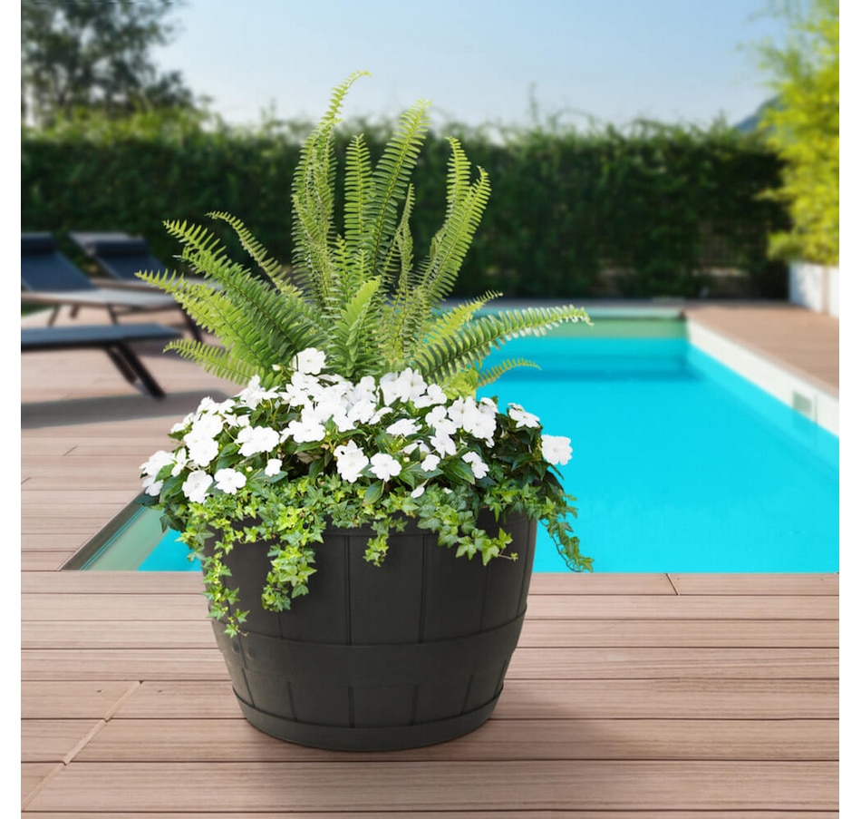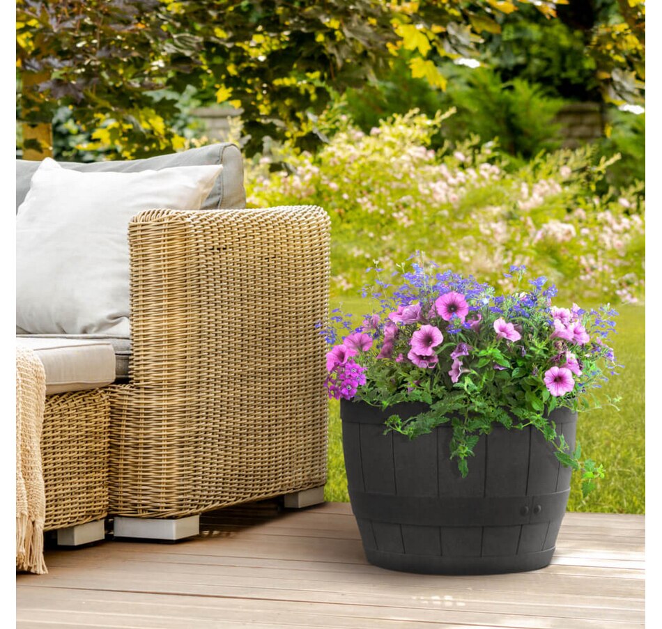 Whiskey Barrel Indoor/Outdoor Self-Watering Large Round Planter Pot