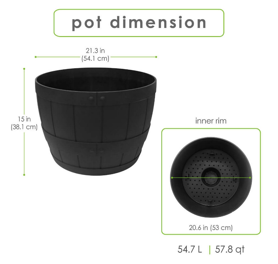 • Tierra Verde Whiskey Barrel Indoor/Outdoor Self-Watering Large Round Planter Pot