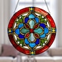 • Tiffany Style 12" Round Geometric Stained Glass Window Panel