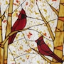 • Tiffany Style 14" Autumn Cardinal Stained Glass Window Panel