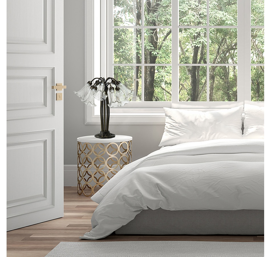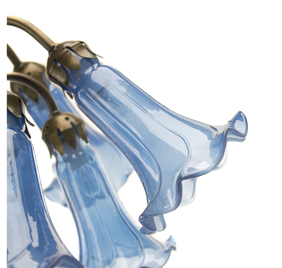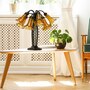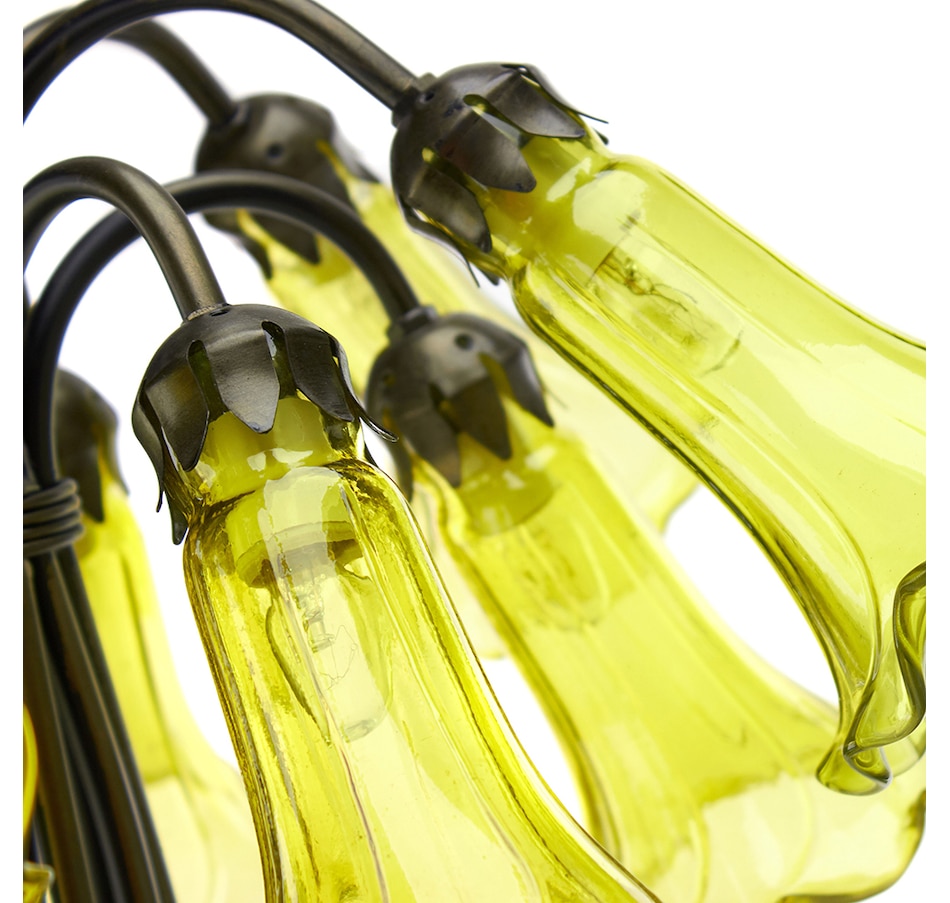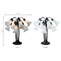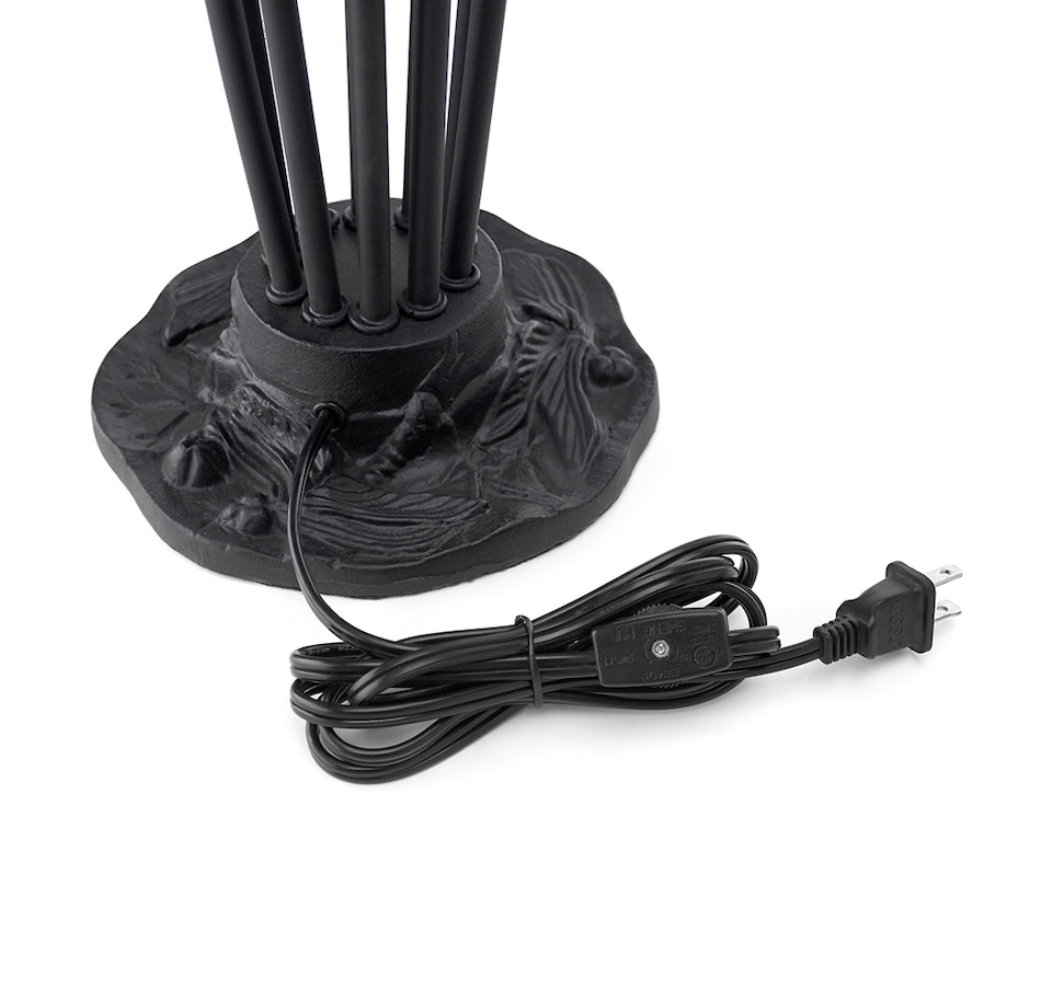 This table lamp from marries vintage and traditional styles to create a beautiful and unique lighting option for a bedroom, living room or entryway. Showcasing a brushed bronze-finish novelty metal base that depicts stems leading up to floral-style clear with gold-coloured flecks glass bell shades, it casts a soft glow with a ten 15-watt E12 bulb (not included). A great pairing with Bohemian, transitional or eclectic décor, the lamp also features a 65-inch cord with an in-line switch for versatile placement.