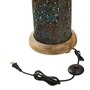 If you're looking for an industrial lighting piece that catches the eye without overwhelming the room, this punched metal pedestal floor lamp makes a great pick. It's designed with a natural-coloured mango wood cylinder base and a round faux blue patina-finish metal shade with intricate cutout detailing. The mango wood base is hand-crafted and features a natural wood grain. The medallion-like cutout design filters the soft light from two 25-watt Type-B bulbs (not included) for a cool lighting effect and the 90-inch power cord with a foot switch makes it easy to place in a variety of spaces.