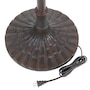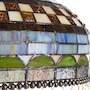 The stunning Veronica lamp is designed with a brown candlestick-shaped base made from polyresin and metal. It has a multi-coloured pointed dome-shaped shade with a brickwork design made from 406 cuts of stained glass and 56 cabochons. It is powered by a 84" cord and pull chain switch.