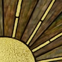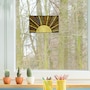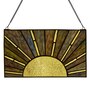 Brighten up your living space with this nature-inspired stained-glass window panel. Featuring both warm and cool hues of of Tiffany-style glass in gold, brown, blue and green, this stained-glass panel brings a burst of colour when displayed in a window or sun-illuminated room. Handcrafted from 31 individual glass cuts, the eight-inch-high abstract sunrise or sunset image is created using artisanal soldering methods that create borders for the stained-glass pieces. A 26-inch metal link chain is also included for easy hanging, whether in a sunny living room or kitchen, or against an illuminated wall in a sunroom as a stunning addition to your home's décor.