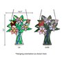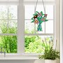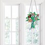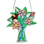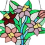 Bring the loveliness of a spring garden into a favourite sunny window with this beautiful bouquet rendered in stained glass. This handcrafted stained-glass window panel ornament is made from 88 individual cuts of glass and features pink, purple and red-petalled flowers with vivid green and blue stems in a clear glass vase. Hang it from your kitchen, living room or bedroom window with the included 28" long chain to enjoy the beauty of a garden throughout the seasons!