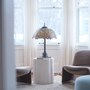 If you're looking for a true standout lamp for your bedroom or living room, this gorgeous Tiffany-inspired table lamp makes a perfect choice. Inspired by a Louis Comfort Tiffany design that originally premiered in 1900, the lamp features an antique bronze-finish novelty metal base and a dome-shaped stained glass shade made up of multicoloured glass cuts forming a cascade of dainty laburnum flowers. It requires three 60-watt Type-A bulbs (not included) and the 60-inch power cord allows for versatile placement on any tabletop.