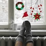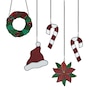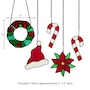 Let the magic of a sunbeam bring holiday cheer into your favourite room with each of these mini stained-glass Christmas suncatchers, featuring 49 total cuts of artisanal glass featuring tones of red, green and white, all handcrafted into the shapes of a Christmas wreath, a glowing poinsettia, two candy canes and Santa's hat. Each suncatcher has a metal link chain included for easy hanging separately in your sunniest windows, or grouped together on a glass door, to play and dance in the natural light. And at just five inches high, you can also hang them on your Christmas tree to catch the sparkle of your holiday lights!