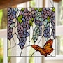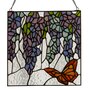 • Tiffany Style Orange Butterfly and Wisteria Stained Glass Panel