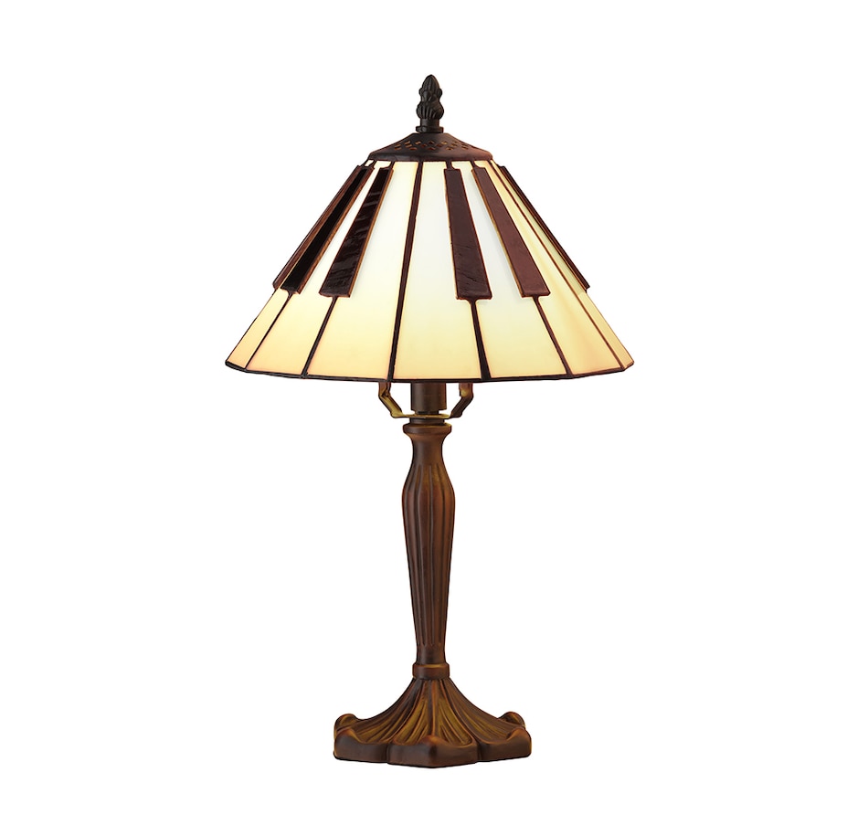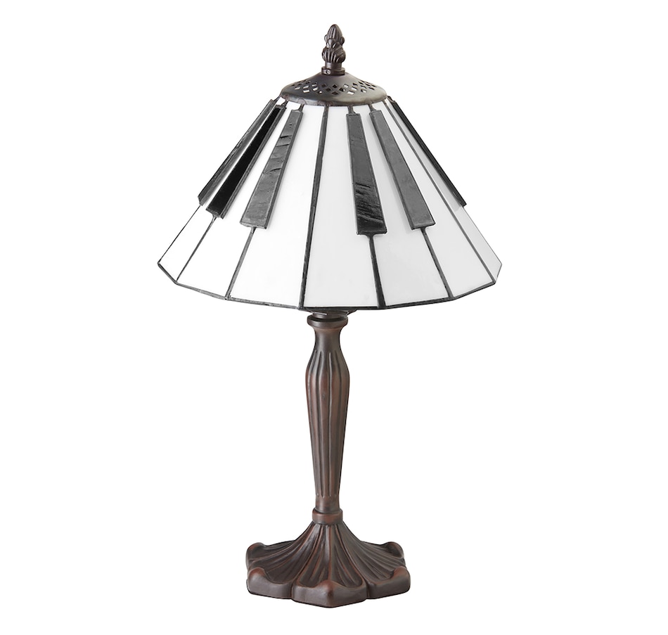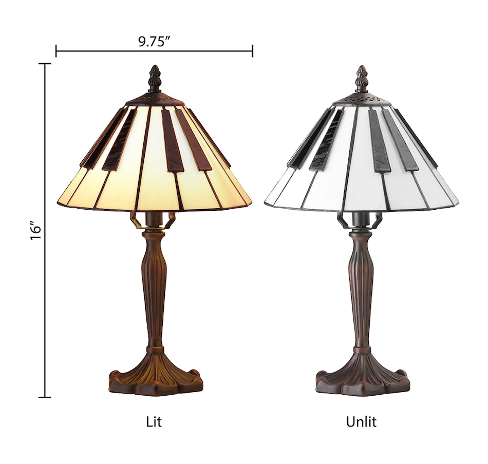 This cone-shaped Tiffany-style stained-glass table lamp brings a touch of sophisticated style anywhere from your cottage kitchen to your music room. Its antique bronze-coloured candlestick base is highlighted with a piano-key-inspired shades in black-and-white coloured stained glass pieces, which diffuses the light from a 25W E12 light bulb (not included) into gentle mood lighting. With its 72" power cord making it easy to plug it into your wall outlet, this lamp's traditional appeal will be apparent no matter where you choose to display it in your home.