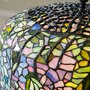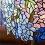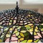 The award-winning and breathtaking design of this lamp is modelled after the famous Wisteria line by Louis Comfort Tiffany. First designed in 1901 by Clara Driscoll, the lead glassmaker on Louis Comfort Tiffany's team, the Wisteria is a symbol of the Art Nouveau movement. This majestic and dramatic stained-glass lamp will bring delicate light in hues of green, blue and purple into any room, and is hand-crafted from a staggering 1,898 pieces of glass. It makes a stunning impression in any room or can function as a fabulous statement in your entryway.