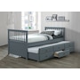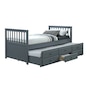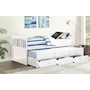 This multi-purpose, 39" Captain's Daybed is a great space saving solution with both storage and a trundle. The solid wood frame offers a sturdy sleeping space, while the side drawer pulls out to reveal both a trundle for an additional mattress, and 3 deep drawers.