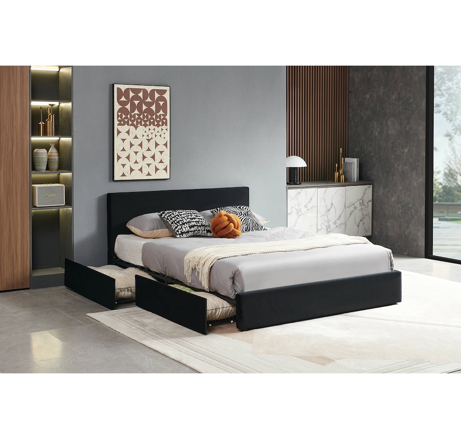 • Draped in sumptuous velvet, this bed becomes a statement piece that seamlessly integrates into your modern decor.