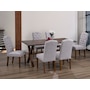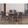 • Linen fabric with walnut finish wood legs