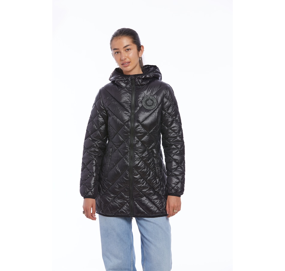 Finish your cool weather look in elevated style with this long lightweight hooded jacket from Toboggan.