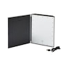 • Opens to reveal the LED lighted mirror with 1x magnification and (3) light settings