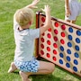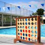 A giant version of the classic 4-in-a-row game, this is a beautiful finished wood game measuring 31" wide. Use the red and blue plastic coins to be the first to connect 4 in a row to win. Pull the wooden bar at the bottom of the game to release the coins when you finish. Quick and easy to assemble.