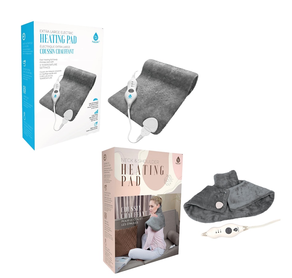 Indulge in warmth and comfort with our Total Comfort Package Bundle, featuring an Electronic Heating Pad and a Neck & Shoulder Heating Pad. This carefully crafted bundle is designed for ultimate relaxation, providing targeted relief and soothing warmth. Explore the features of each component below:Bundle Includes:Electric Heating Pad:Adjustable Warmth: Choose from three temperature settings to find the perfect level of comfort for your needs.Safety First: Automatic switch-off after 120 minutes ensures worry-free use, and the heating pad comes with overheating protection for added safety.Easy Maintenance: The washable cover makes cleaning a breeze, ensuring a fresh and cozy experience every time.Fast Heating: Experience quick warmth with the fast-heating technology, providing swift relief to tired muscles.Neck & Shoulder Heating Pad:Luxurious Comfort: Made from super cozy flannel fleece, this heating pad wraps you in warmth and comfort.Tailored Temperature: Enjoy three temperature settings for a personalized and soothing experience.Extended Reach: The 10-foot extra-long cord offers flexibility and convenience, allowing you to use the heating pad wherever you prefer.Machine Washable: The heating pad is machine washable, making it easy to keep it clean and ready for use.Safety Features: Automatic switch-off after 120 minutes and overheating protection ensure a safe and secure relaxation session.Features:Dual Comfort: Experience the combined benefits of a full-body Electric Heating Pad and the targeted relief of the Neck & Shoulder Heating Pad.Versatile Use: Ideal for soothing various body parts, making it perfect for relieving tension in your neck, shoulders, back, and more.Convenient Controls: User-friendly controls on both heating pads allow for easy temperature adjustments and hassle-free operation.Treat yourself or a loved one to the luxurious warmth of our CozyHeat Bundle. Elevate your relaxation routine and enjoy the benefits of soothing heat therapy. Order now and embrace the cozy comfort of this premium heating pad duo!