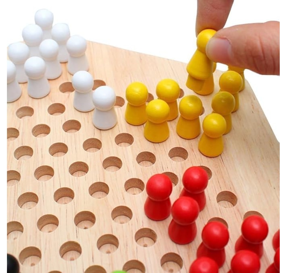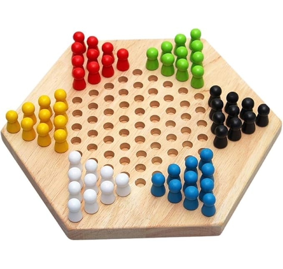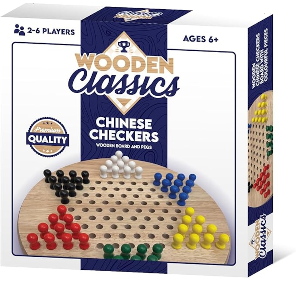 Tradeopia Chinese Checkers is a timeless, easy-to-learn strategy board game that can be enjoyed by 2 to 6 players. Featuring a colorful star-shaped board and marbles, players race to move all their pieces from one side to the opposite, using strategic jumps to outmaneuver opponents.