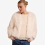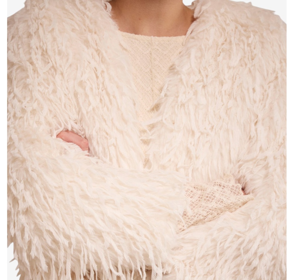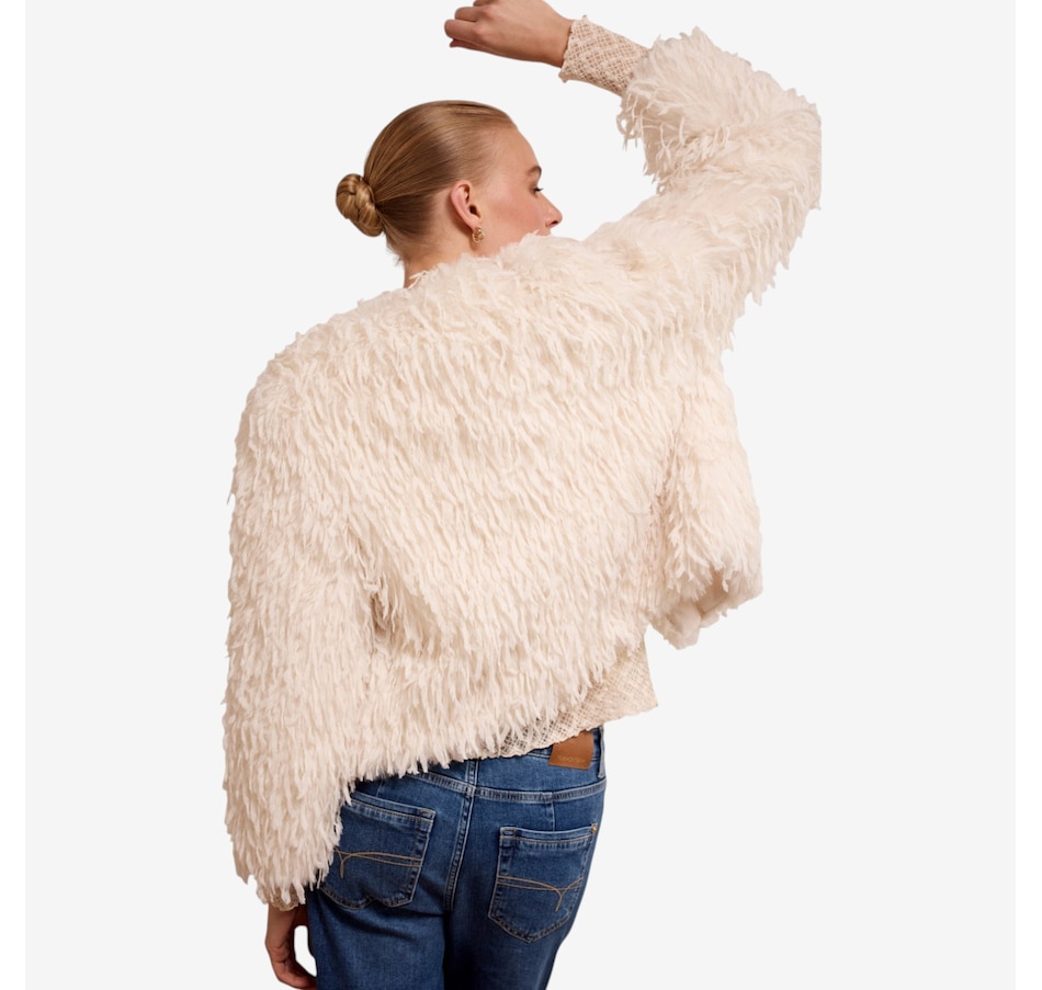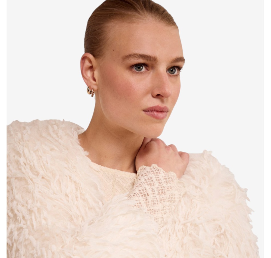 This faux fur feather jacket is a true showstopper that combines warmth and glamour into one stylish autumn piece. This jacket feels wonderfully soft and offers the comfort of faux fur with a striking, airy texture reminiscent of feathers. The off white colour gives the jacket a fresh, luxurious look that contrasts beautifully with darker autumn tones. The short cut makes it perfect for