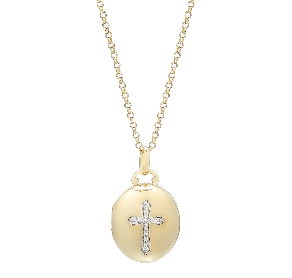Sterling Silver Two Tone Cross Locket Pendant And 18" Chain