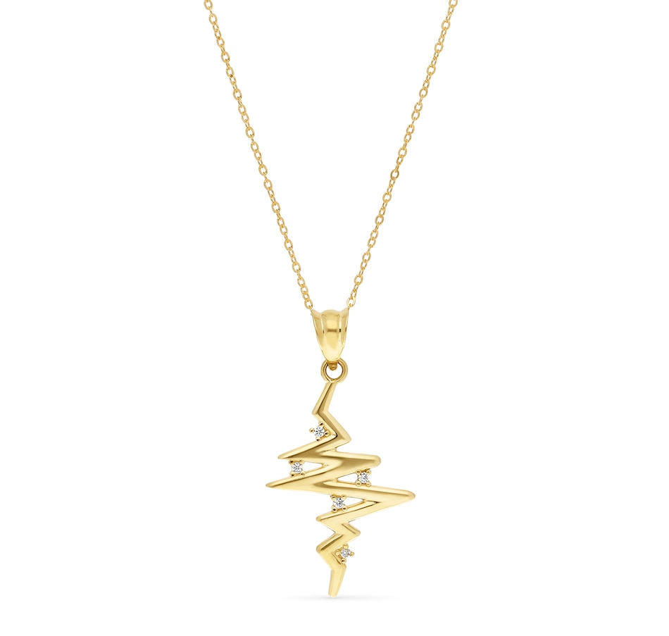 10K Yellow Gold Cubic Zirconia Heartbeat Pendant with Chain
