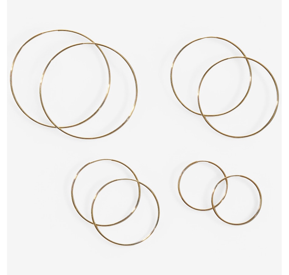 10K Yellow Gold Diamond Cut Sleeper Hoop Earrings