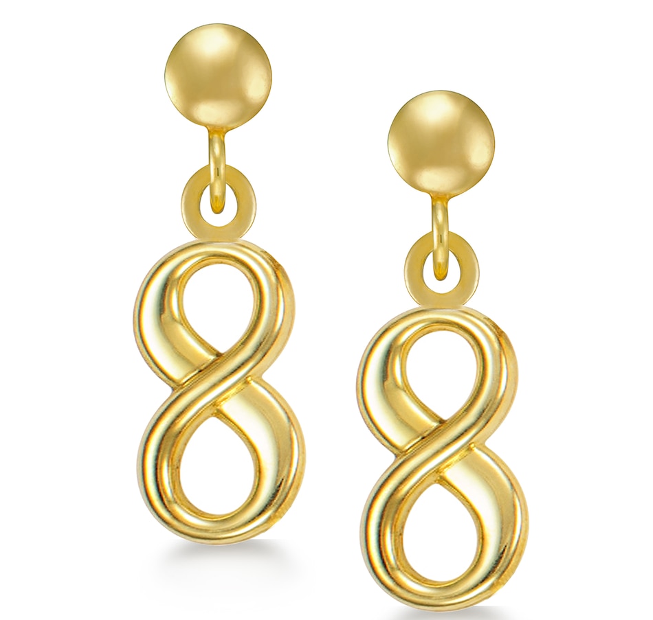 Add a classic finish to every look with these gold infinity drop earrings from TruGold.