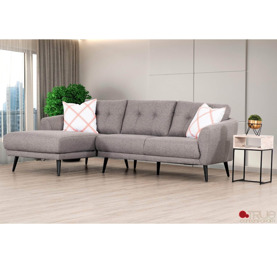 Elizabeth Tufted Sectional Sofa in Nia Grey