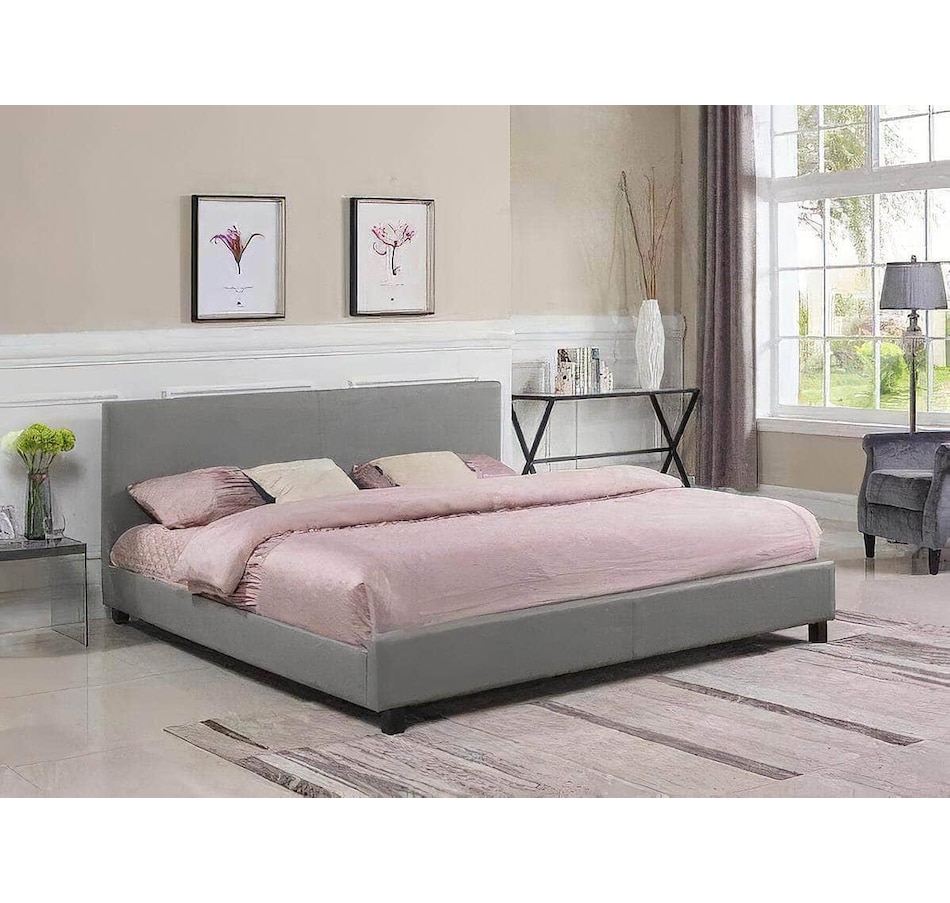 Mirabel Grey Faux Leather Platform Bed