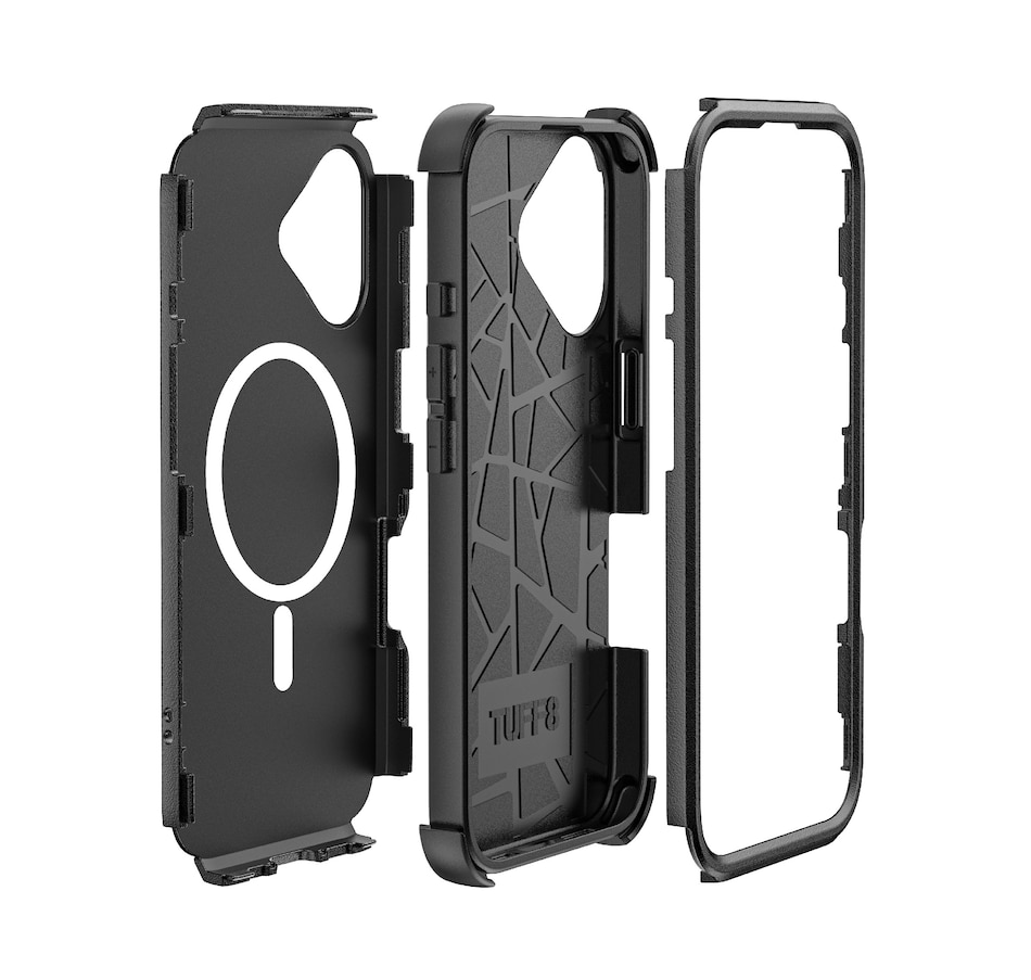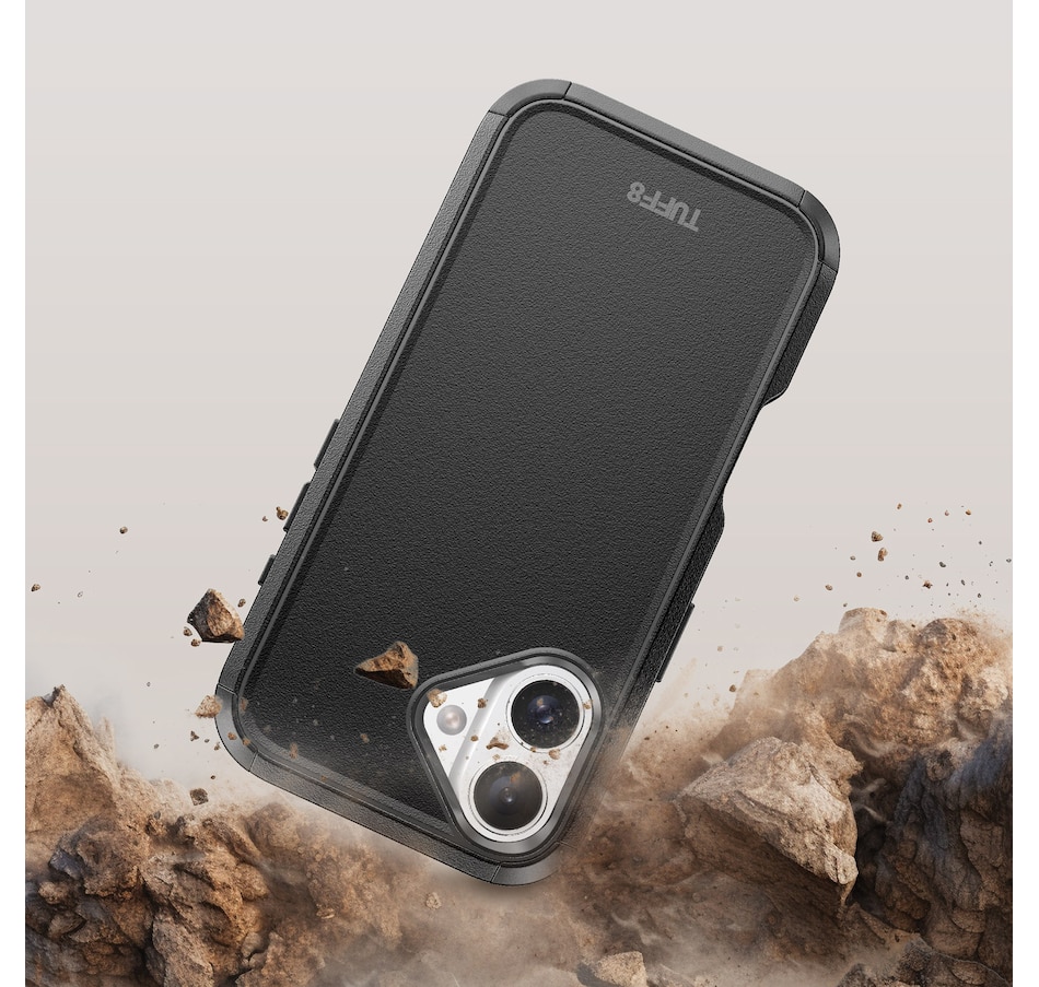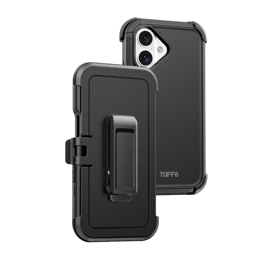 • Tuff8 Impact Three-Layer Protective Case with Holster for iPhone 16 Plus