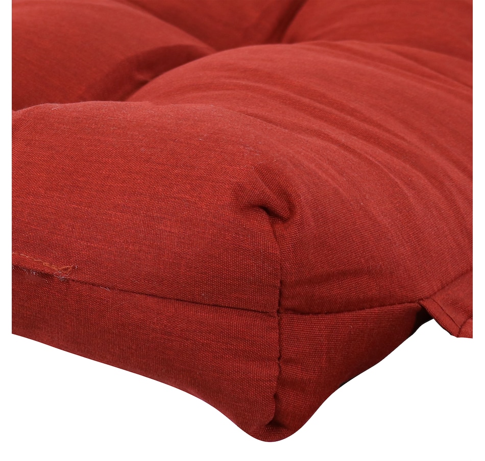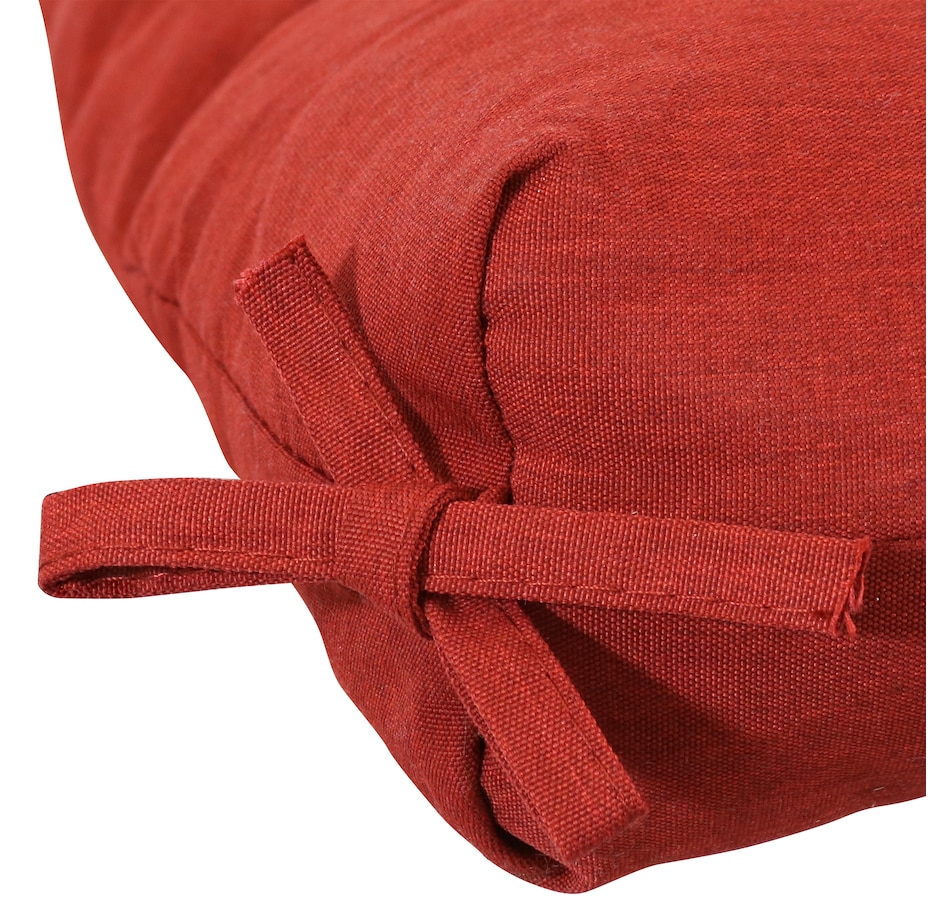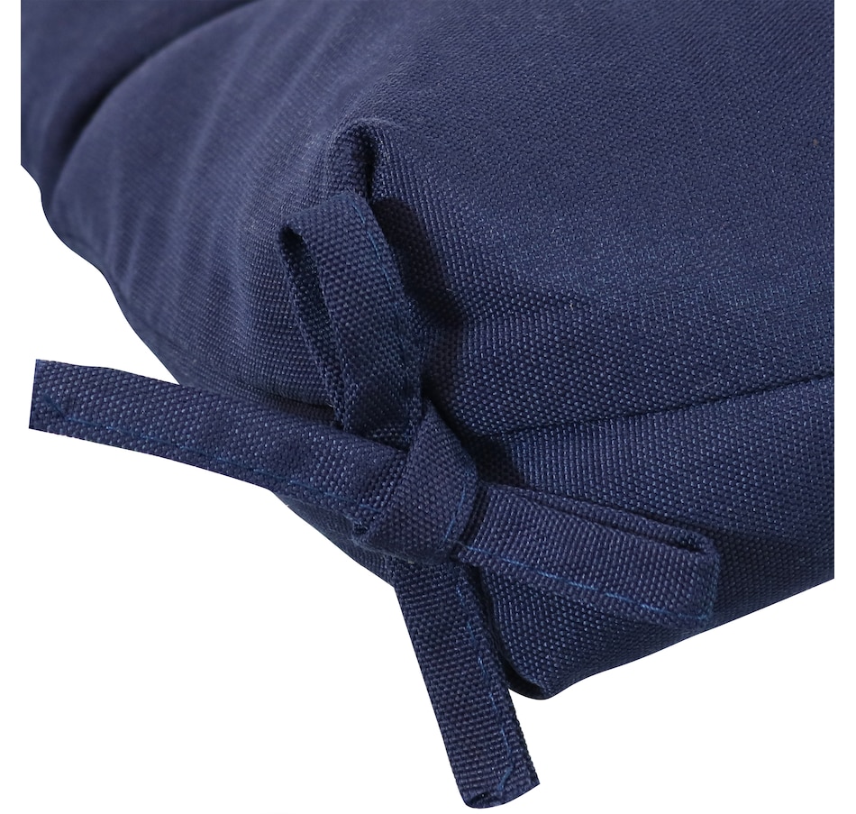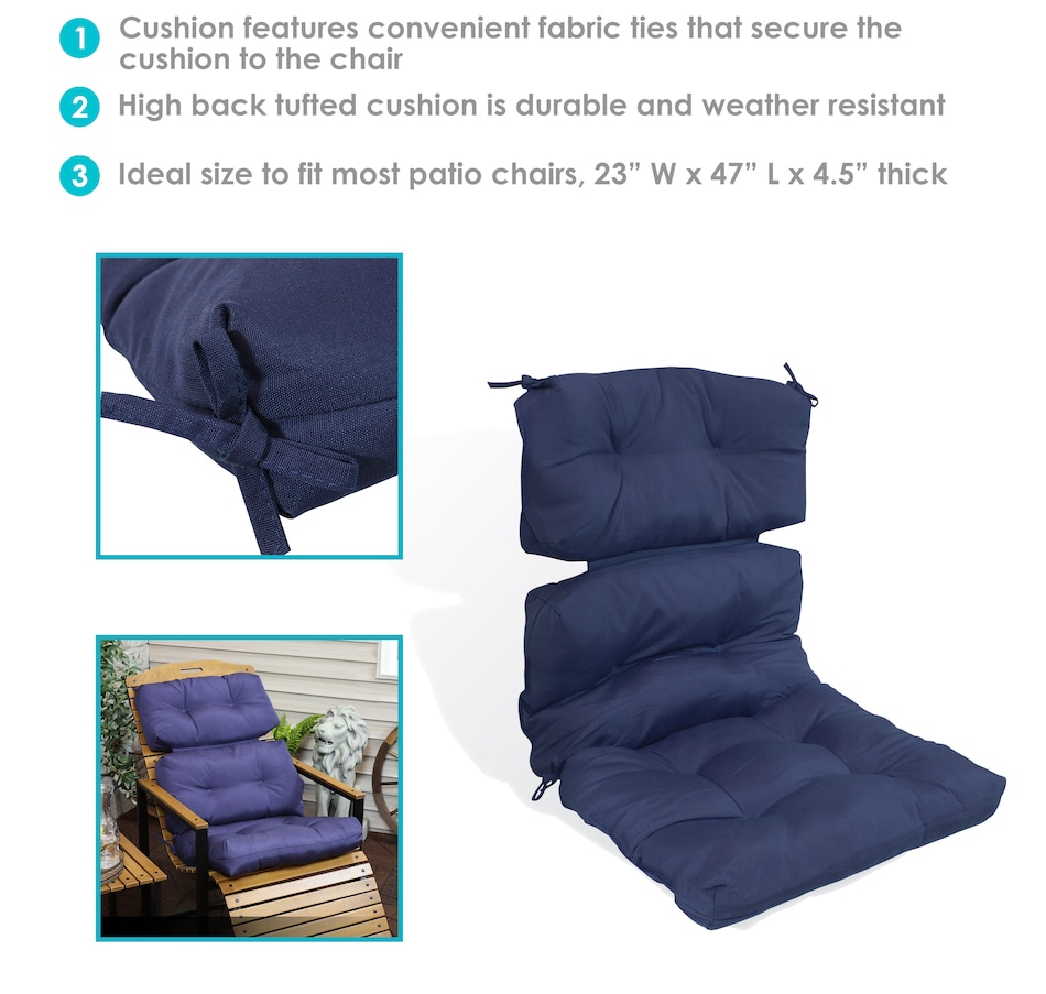 Add comfort and color to the patio furniture with this cozy, high back patio cushion. This high back, tufted cushion is designed for use with patio chairs, hanging chairs, or any other seated design, and will effortlessly add a vibrant pop of color to your deck, front porch, or lawn. This durable, high back dining chair cushion is made from durable fabric for weather resistance and has a plush polyester filling for comfortable seating. This high back garden chair cushion features convenient fabric ties that can be used to secure the cushion to the chair. Plus, it is easy to maintain. Simply spot wash with a mild detergent to get rid of any stains or marks. These versatile pillows are wonderful accessories to make your porch, garden, patio and indoor living areas a comfortable place to unwind and relax. Even use these pillows to add pops of color or vibrancy to any space.