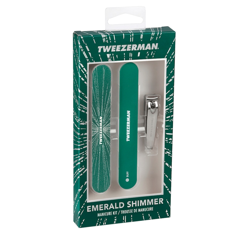 The Emerald Shimmer Manicure Kit has all the essential tools you need to care for your nails. The Kit contains the Nail Clipper, dual-sided Nail Buffer, and two Nail Files. Precisely trim, shape, buff and shine nails to perfection and achieve this season's top nail trends.