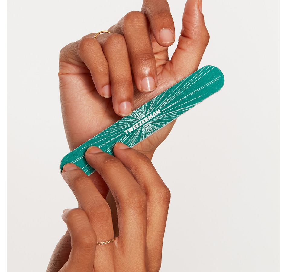 This nail file is dual sided for shaping and smoothing nail edges with precision.