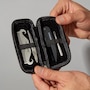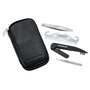 A travel set of mini personal care tools for him, perfect for on-the-go or at-home self care and grooming. Small but super effective and precise, this travel set of mini personal care tools meets all your grooming needs for at home or on the go. Includes case.