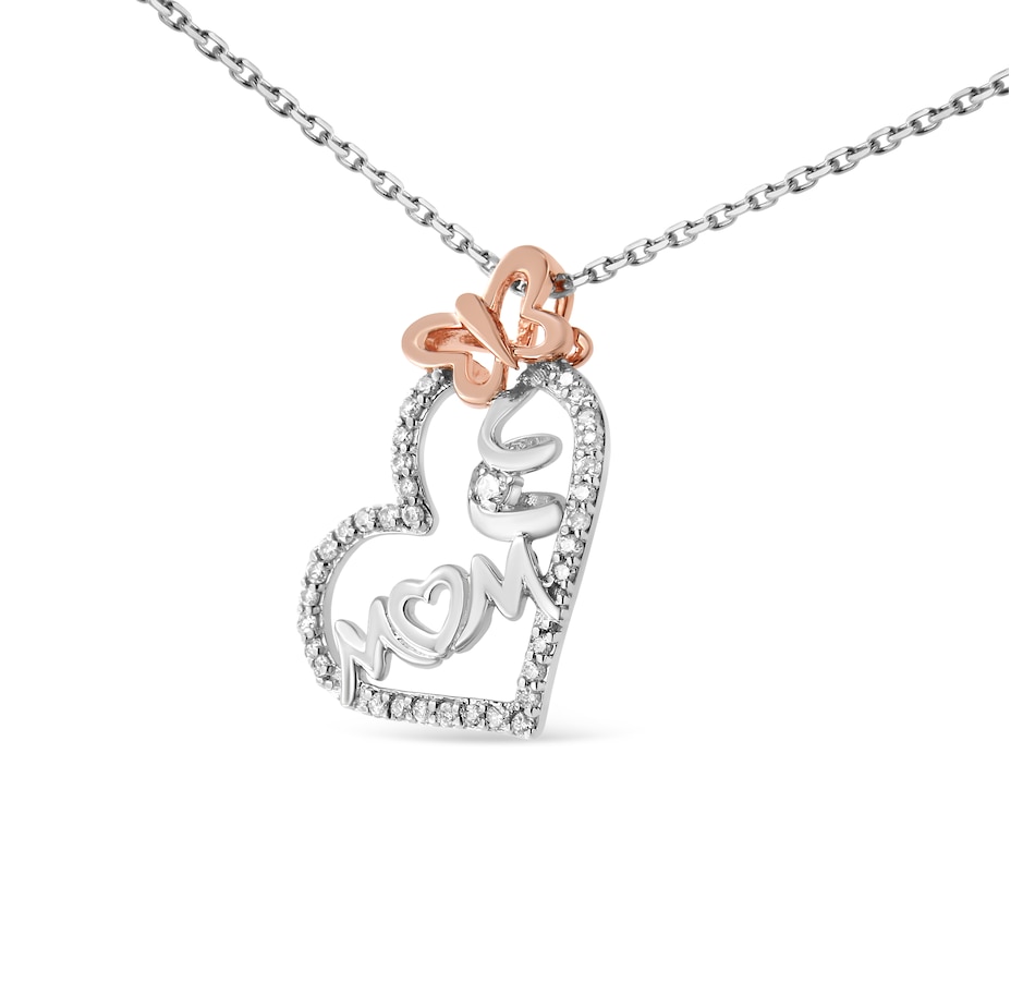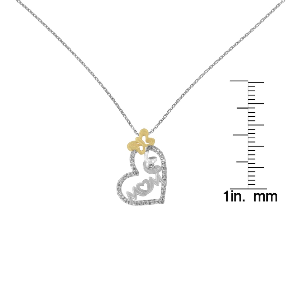 Two Tone .925 Sterling Silver 1/5 cttw Diamond "Mom" and Heart Pendant Necklace (H-I, I1-I2)