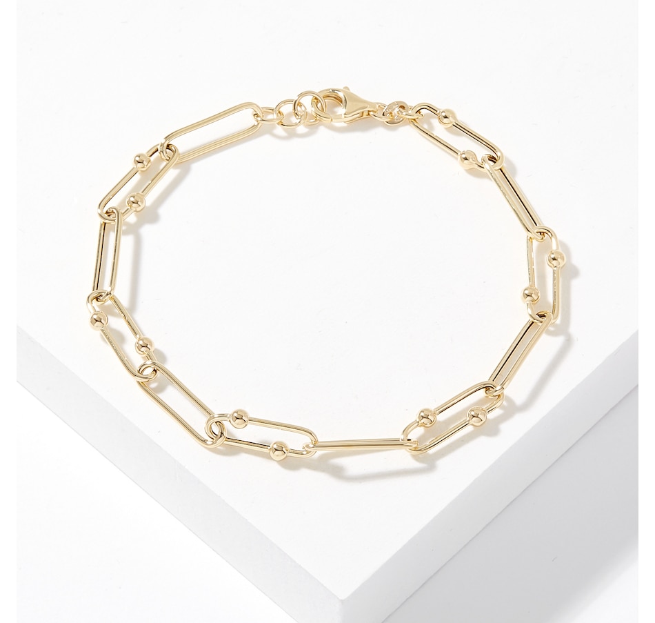Enjoy the simplistic beauty of this lovely yellow gold paperclip bracelet from Unoaerre. It's the perfect accent to even the most casual outfit. Wear it to stand out a little at work, or use it to accessorize a cute lunch date look. The simplicity is what makes it so versatile - it'll also add the perfect level of sparkle and elegance to a fancy nighttime outfit. Wear it for your next work function or stand out on a night out on the town! Pair it with the Unoaerre paperclip necklace for a put-together look. Pick up this beautiful piece today right here at TSC!