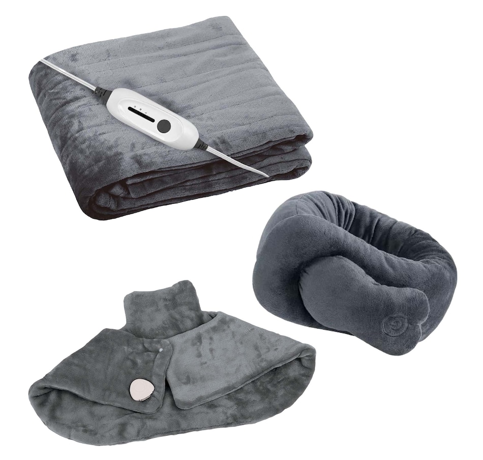 Relax, rejuvenate, and wrap yourself in luxurious warmth and soothing comfort with the Ultimate Cozy Comfort & Relaxation Bundle. Featuring an Electric Microplush Heated Blanket Throw, a targeted Neck & Shoulder Heating Pad, and a Portable Massaging Wrap, this bundle is the perfect way to pamper yourself or a loved one. Ideal for cold nights, sore muscles, and everyday relaxation, these premium products combine cutting-edge technology with ultra-soft materials for an unparalleled comfort experience.Bundle Includes:1. Electric Soft Microplush Heated Blanket Throw (62x84 Inches)Wrap yourself in warmth with this large, ultra-soft heated blanket designed for ultimate comfort.3 Temperature Settings: Choose from low, medium, or high heat for personalized warmth.Fast Heating Technology: Delivers quick warmth for chilly evenings.8-Hour Auto Shut-Off: Ensures safety and energy savings.20-Foot Extra Long Cord: Offers flexibility for use in any room.Machine Washable: Detachable controller for easy cleaning.2. Pursonic Electric Neck & Shoulder Heating PadTarget tension and soreness with soothing heat therapy.Perfect Fit Design: Drapes comfortably around your neck and shoulders for maximum coverage.3 Adjustable Heat Settings: High, medium, and low options for customizable relief.Moist & Dry Heat Options: Choose your preferred type of heat for deeper relaxation.10-Foot Long Cord & 2-Hour Auto Shut-Off: Enjoy freedom of movement and safe, worry-free use.Ultra-Soft Microplush Fabric: Luxuriously cozy and machine washable for lasting comfort.3. Pursonic Portable Neck & Shoulder Adjustable Massaging WrapRelax anywhere with this portable, battery-powered massaging wrap.Soothing Heat & Dual Massage Modes: Combines heat and powerful massage to relax tired muscles.Soft Micro Mink Fabric: Ultra-comfortable, with a plush exterior for added luxury.Versatile Use: Perfect for home, office, car, gym, or travel.Battery Operated: Powered by 2 AA batteries (not included) for on-the-go relaxation.Why Choose the Ultimate Cozy Comfort & Relaxation Bundle?Comprehensive Comfort: A complete package for warmth, pain relief, and relaxation.Premium Quality: High-performance features and soft, durable materials ensure lasting comfort.Perfect Gift: Thoughtful and practical, ideal for anyone who appreciates relaxation and cozy warmth.Unwind, de-stress, and stay warm with this all-in-one solution for ultimate relaxation.