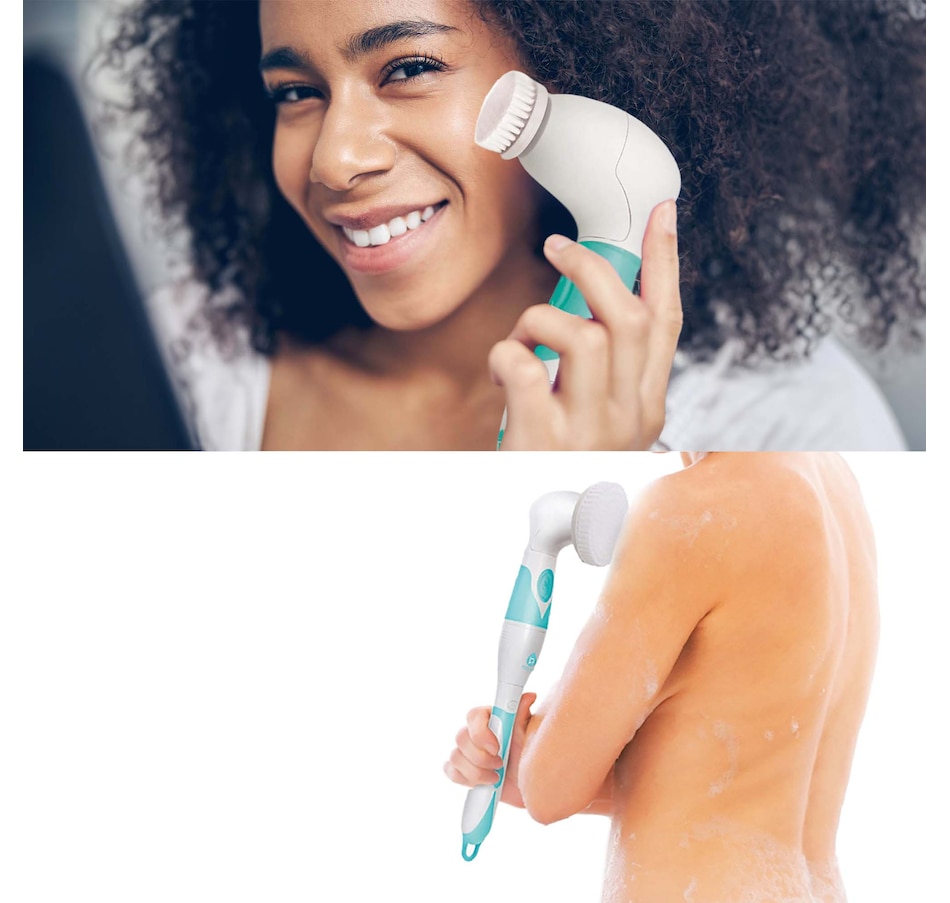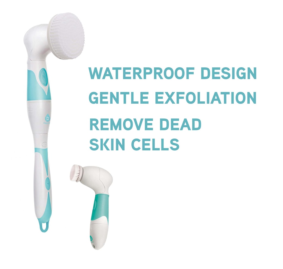 Advanced Facial Cleansing Brush:Upgrade your skincare routine with the Pursonic Advanced Facial and Body Cleansing Brush. This microdermabrasion system features a waterproof design, allowing you to pamper and polish your entire body with ease. The included facial brush attachments gently cleanse the delicate skin on your face and neck, while the pumice stone and body brush attachments provide a full-body treatment. With four multifunction brush heads, including a body brush, sponge brush, pumice brush, and facial brush, this complete system offers a full range of skincare benefits. Keep your skin tight, younger-looking, and glowing with the help of this cordless and easy-to-use design, suitable for all skin types. (Batteries not included)Features:Includes 4 multifunction brush heads: body brush, sponge brush, pumice brush, and facial brushFull range skin care: Use for facial skin cleansing, exfoliating dead skin, removing makeup, and body cleansingBenefits: Keep your skin tight and younger-looking, promote blood flow, and reveal younger-looking skin underneathWaterproof design: Completely safe to use in the shower without worry about potential damagesCordless, easy-to-use design suitable for all skin typesAdvanced Body Cleansing Brush With Extended Handle:Renew your skin with the Pursonic Facial & Body 360° Cleansing Brush. This brush comes with four brush heads designed for face and feet. Its cordless, waterproof design allows for flexible, portable use, and the detachable extendable handle helps reach hard-to-reach areas. With gentle exfoliation suitable for the face and neck, along with pumice stone and body brush attachments for whole-body treatment, this cleansing brush provides a complete skincare solution. Use it in the bath or shower for added convenience.Features:Detachable extendable handleHelps treat hard-to-reach areasGentle on the skin on the face and neckPumice stone and body brush attachments for whole-body treatmentHelps exfoliate the skin and remove dead skin cellsCan be used in the bath or showerFor Wet and Dry Use: This waterproof Pursonic Facial and Body 360° Cleansing Brush can be used in and out of the shower, making it suitable for various skincare routines. Use each brush head with your favorite cleansing products for optimal results.