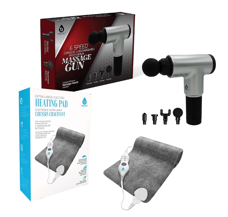 This bundle combines two powerful tools for pain relief and muscle recovery: the 6 Speed Cordless & Rechargeable Professional Massage Gun and the Electric Heating Pad. Together, they offer a comprehensive solution for muscle relaxation and recovery, ideal for athletes or anyone looking to relieve tension, soreness, and stress from the comfort of home.6 Speed Cordless & Rechargeable Professional Massage GunThe 6 Speed Cordless Deep Tissue Massage Gun is designed to help reduce muscle recovery time and relieve pain from head to toe. Featuring 4 interchangeable massage heads, it targets specific muscle groups with precision, helping to ease muscle soreness, improve circulation, and reduce chronic pain. Whether you're warming up before a workout or recovering afterward, this lightweight and portable massage gun is the perfect companion. With a battery life of up to 3 hours and a quiet, powerful motor, it delivers professional-grade relief anywhere, anytime.6 adjustable speed settings for customized massages4 interchangeable massage heads to target different muscle groupsCordless and lightweight, making it portable and easy to useLong-lasting battery with up to 3 hours of continuous useElectric Heating PadThe Electric Heating Pad offers soothing heat therapy for muscle relief. With an extra-large 12x24 inch design, it provides excellent coverage for larger muscle groups such as the back, shoulders, or legs. The pad heats up quickly and has 3 adjustable temperature settings to suit your comfort level. Its soft microplush surface ensures maximum comfort, while the moist heat therapy option allows for deeper penetration of heat into muscles for more effective relief.3 heat settings (High, Medium, Low) for customized therapyExtra-large 12x24 inch size for full-body relief2-hour auto shut-off feature for safety and energy conservation10-foot extra-long cord for easy use in any comfortable spotMachine washable for easy cleaning and maintenanceTake control of your pain and muscle recovery with this powerful bundle, offering the ultimate at-home therapy solution for a healthier, more relaxed you!
