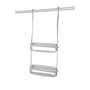 Store all your shower essentials in the Flex shower caddy by umbra. Flex was designed to take up minimal space in the shower while still accommodating larger bottle sizes. The rigid plastic frame and flexible silicone bands read as one continuous color providing a surprising shift in material. The two extra wide plastic shelves accommodate all your shampoo, conditioner and body wash while the four hooks are perfect for louffas and other hang able items. Flex's shelves accommodate bars of soap and the silicone straps can be used to store razors. Mounts over the shower, or on the shower rail. Flex measures 3-3/4-Inch by 12-1/2-Inch by 25-1/2-Inch . Designed by Tom Chung for Umbra- original, modern, casual, functional and affordable design for the home.
