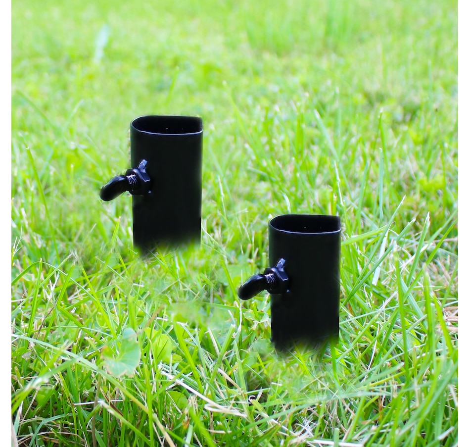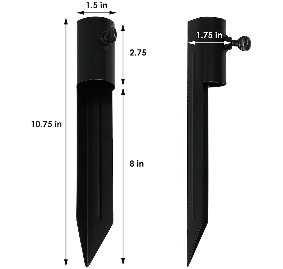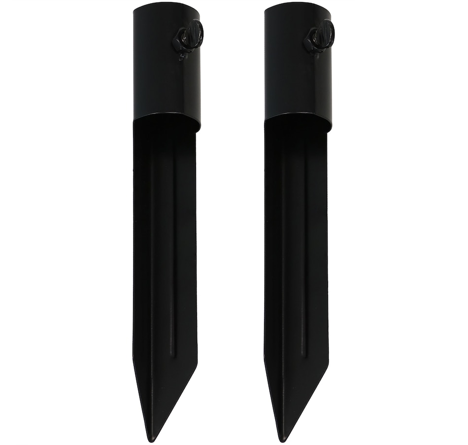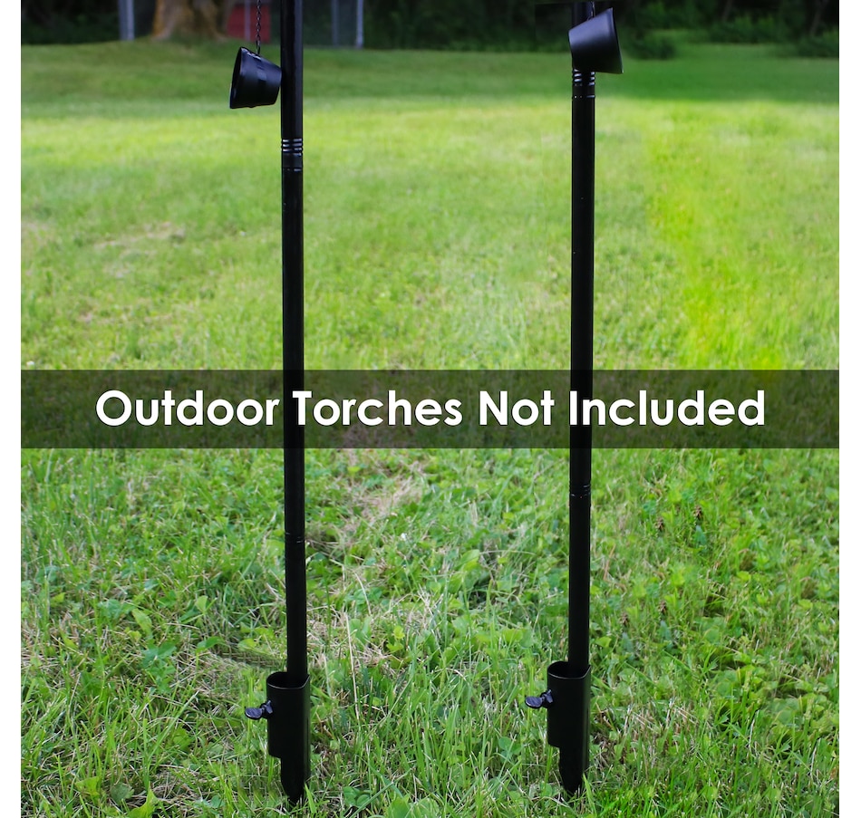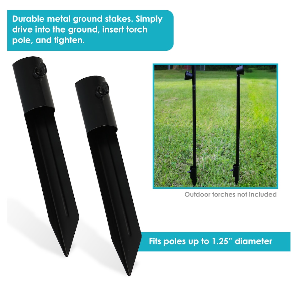Place garden torches, tiki torches, or solar lights in the yard or secure bird feeders and other decor in any outdoor space with ease when using these ground stakes. These steel torch stakes can be used in the yard, around the patio, throughout the garden, or along walkways or pathways. Each yard stake accommodates poles or rods with a 1.25" diameter or smaller and can be used with metal or bamboo torch poles. These outdoor light stakes are made from durable steel with a black, powder-coated finish for added durability and weather resistance. The heavy-duty steel design makes using these stakes in grass, mulch, gravel, or sand possible. The ground spikes are easy to use and install in minutes. Simply insert the stake into the ground, place the decor or garden torch pole into the stake opening, and tighten the metal screw around the pole to secure it.