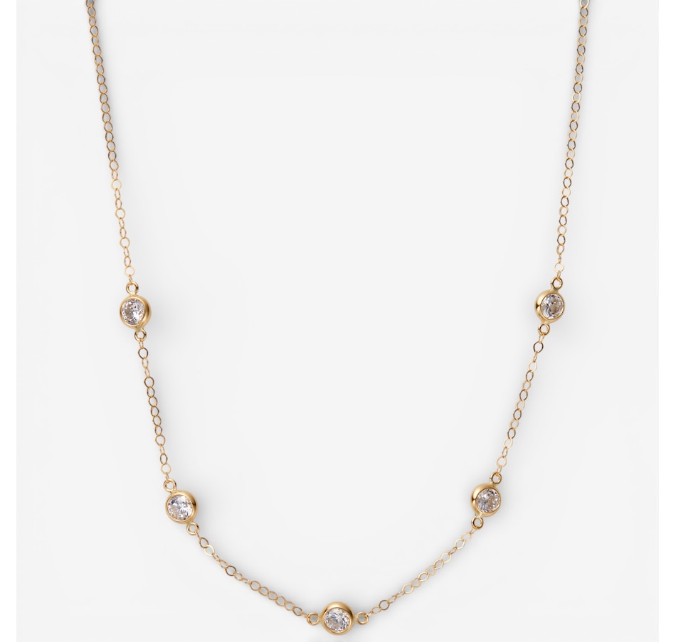 Add a touch of radiant elegance to your everyday style with Uno A Erre’s 18K yellow gold double drop necklace, an irresistibly polished piece that sparkles with effortless sophistication. Featuring five round bezel‑set crystals that dance along the chain, this necklace creates a delicate double‑drop effect that catches the light with every movement. The 16" length with a 1" extender offers versatile styling, whether worn close to the collarbone or slightly longer, and the classic spring‑ring clasp allows for secure, comfortable wear.