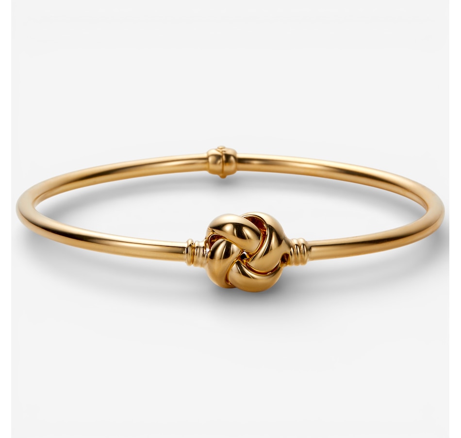 Radiate elegance with the 18K yellow gold love knot bangle from Uno A Erre, a beautifully symbolic piece crafted in a luminous high‑polish finish that catches the light with every move. The delicate width creates a refined, minimalist profile, while the intricately sculpted love knot adds a touch of timeless romance. Designed for effortless wear, the hinged clasp with end caps means a secure, comfortable fit around the bangle. Whether worn solo for a sleek statement or stacked for added shine, this is a meaningful, forever‑worthy piece that brings a touch of Italian artistry to every day.