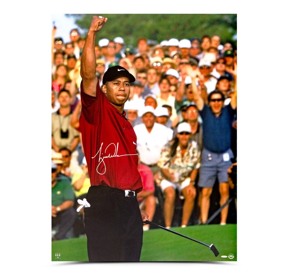 • Upper Deck Authenticated Autographed Tiger Woods 2001 Masters Fist Pump Unframed 30" x 40" Photo