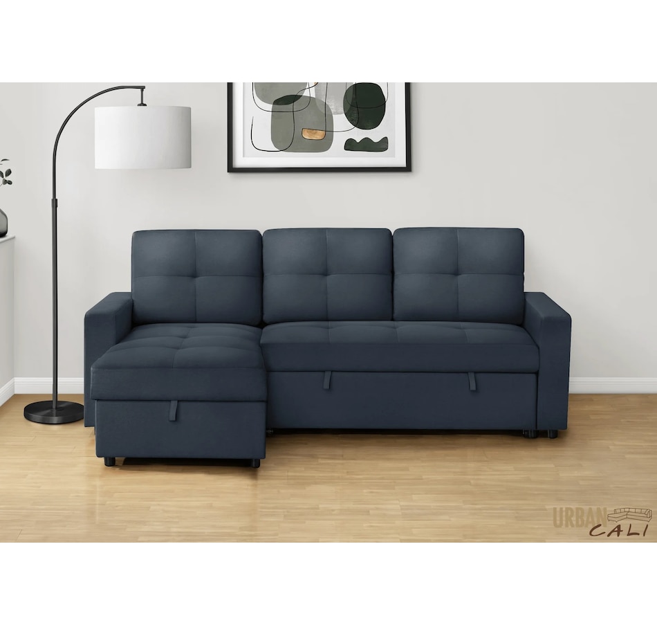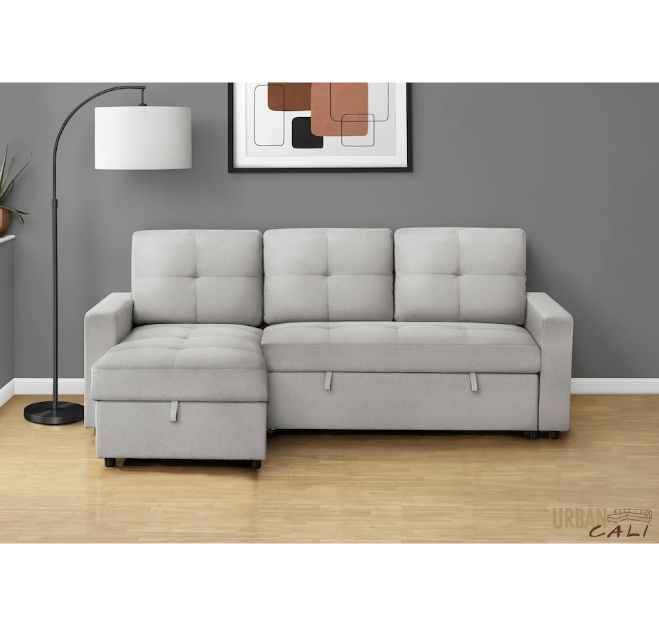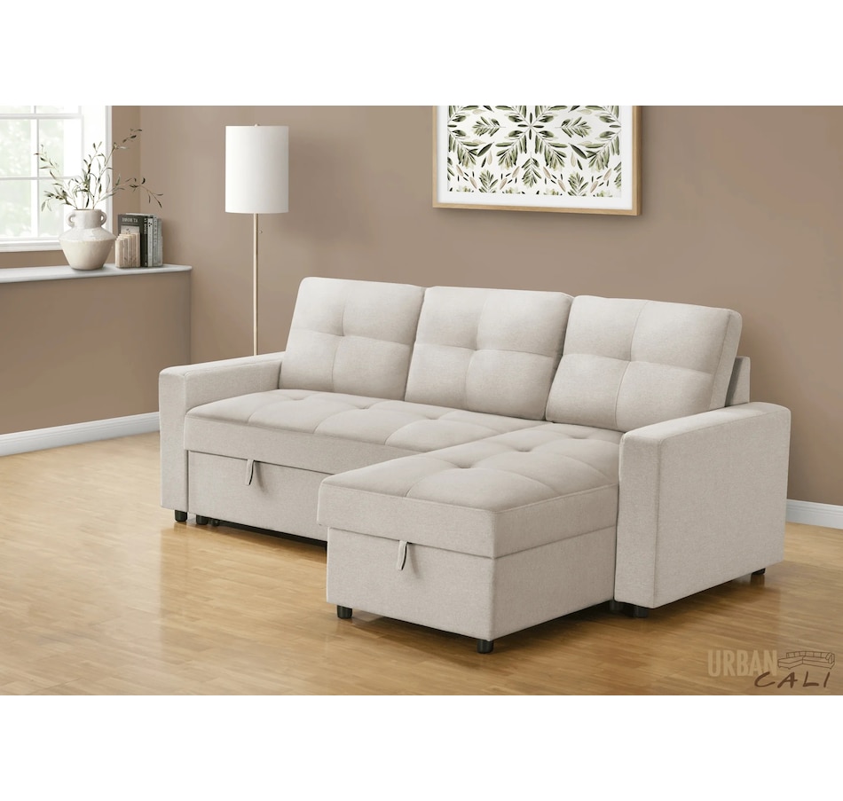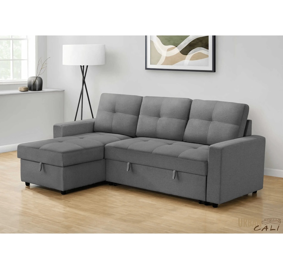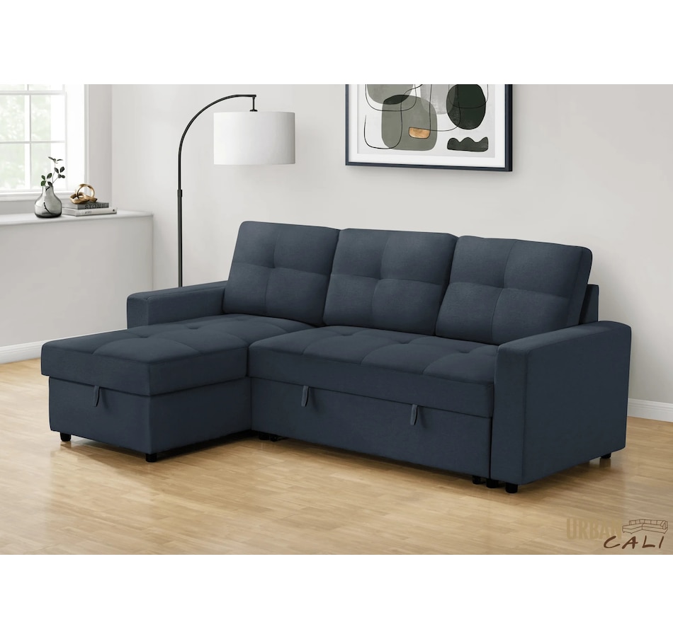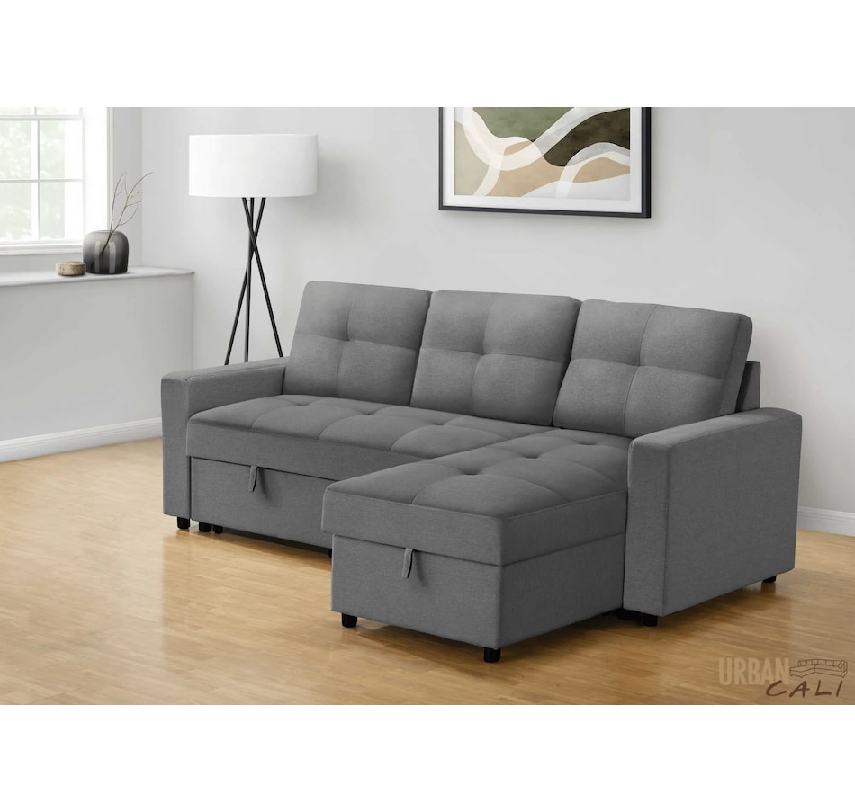 The Venice is our most versatile compact sleeper sofa, with a reversible lounger storage chaise that can be assembled on either side. Designed for all types of living spaces, this minimalist solution utilizes high-quality solid wood frames, pocket coil springs seating, and high density foam cushioning. Overall dimensions measure 89.5"W x 58.25"D x 36"H, making it a perfect fit for any room. Its durable linen-look upholstery and pop-up sleeper sofa bed make it a practical and elegant addition to any home. Don't miss out on this popular sectional, complete with plastic legs for easy assembly and mobility.