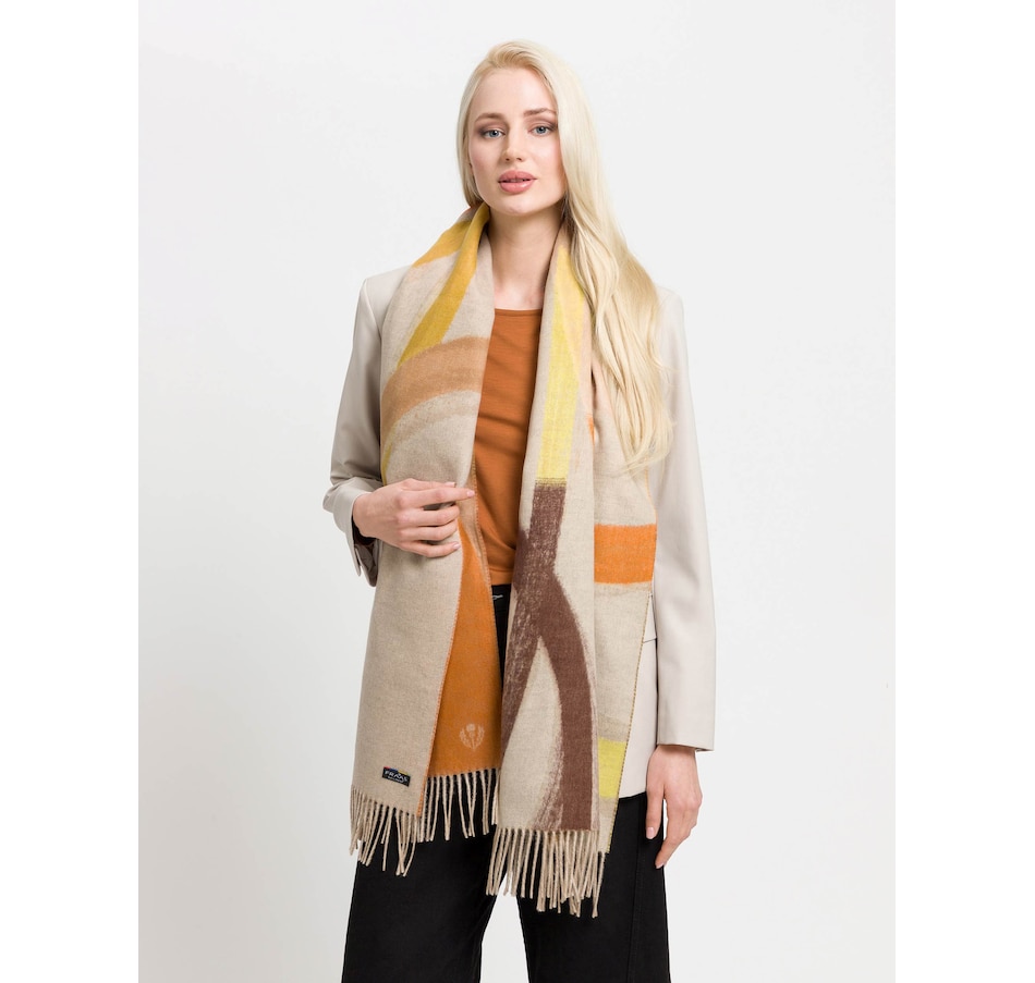 This soft cashmink scarf from V. Fraas is reminiscent of a canvas on which a painter has deftly swept his brush! You can wear it in different ways, either elegantly thrown over your shoulders or wrapped around the neck in the classic way; you'll combine the woven-in colour accents in new ways every time.