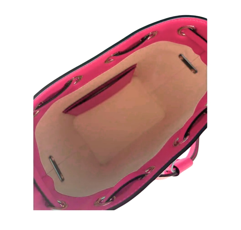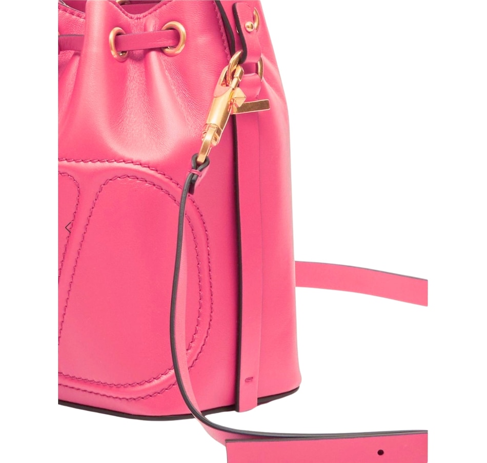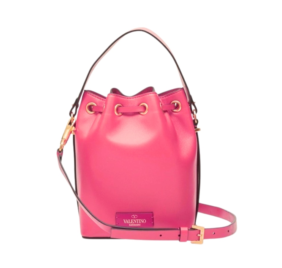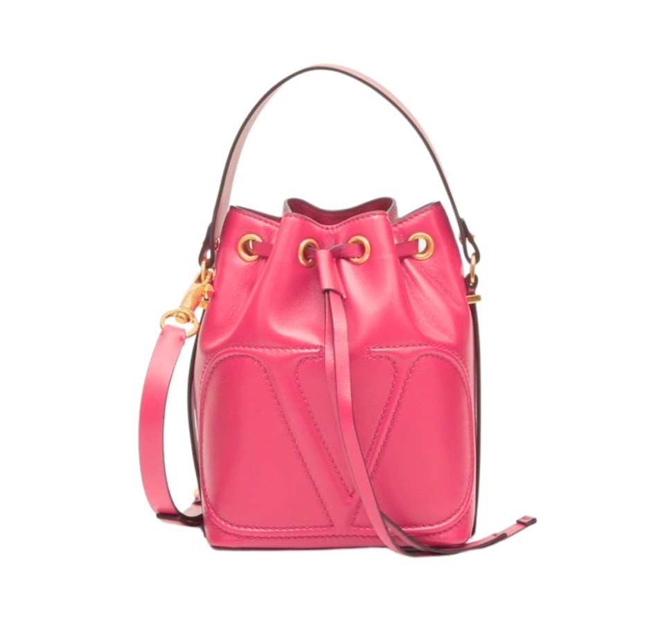 Introducing the Valentino Garavani VLogo Walk crossbody bucket bag, crafted with vibrant hot pink calf leather. The saturated pink hue exudes femininity, while the iconic stitched VLogo adds a touch of opulence. Perfect for the modern woman on the go, its small compact size and structured design features an interior card slot pocket. Elevate any ensemble with this statement piece that that can be carried with the detachable top handle or as a crossbody with the adjustable leather strap. Experience the fusion of fashion and functionality with the Valentino Garavani VLogo Walk Bucket Crossbody Bag. Model: XW9B0G54ENE VLogo Walk Hot pink calfskin leather Gold-tone hardware Drawstring closure Beige canvas lining 1 Interior card slot Detachable leather top handle, Drop: 3" Detachable/Adjustable leather strap, Drop: 18"- 22"179 Measurements: 6" x 4" x 8" (LWH) Includes Valentino Garavani authenticity cards and dust bag Made in Italy